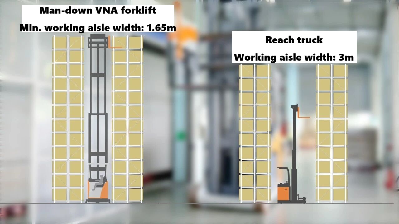 2) Le 4 unités de VNA 3 voies de type homme au sol Les chariots élévateurs sont équipés de 3 -fourchettes électriques qui peut pivoter à 180 degrés ° Cela permet des opérations de chargement, de déchargement et d'empilage dans trois directions. sans avoir besoin de faire demi-tour dans l'allée , simplifiant considérablement le processus opérationnel, réduire le temps par opération, et en améliorant l'efficacité du traitement des commandes.