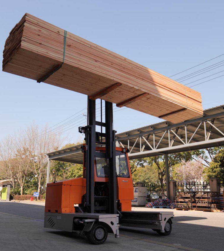 Avec une capacité de charge maximale de 5 000 kg et la capacité de manipuler des matériaux jusqu'à 20 000 mm De par sa longueur, le chariot élévateur WSHM répond aisément aux exigences de la manutention du bois. modes de conduite multidirectionnels (rotation vers l'avant, latérale et sur place) réduisent considérablement les besoins en largeur d'allée et améliorent l'utilisation de l'espace d'entrepôt.