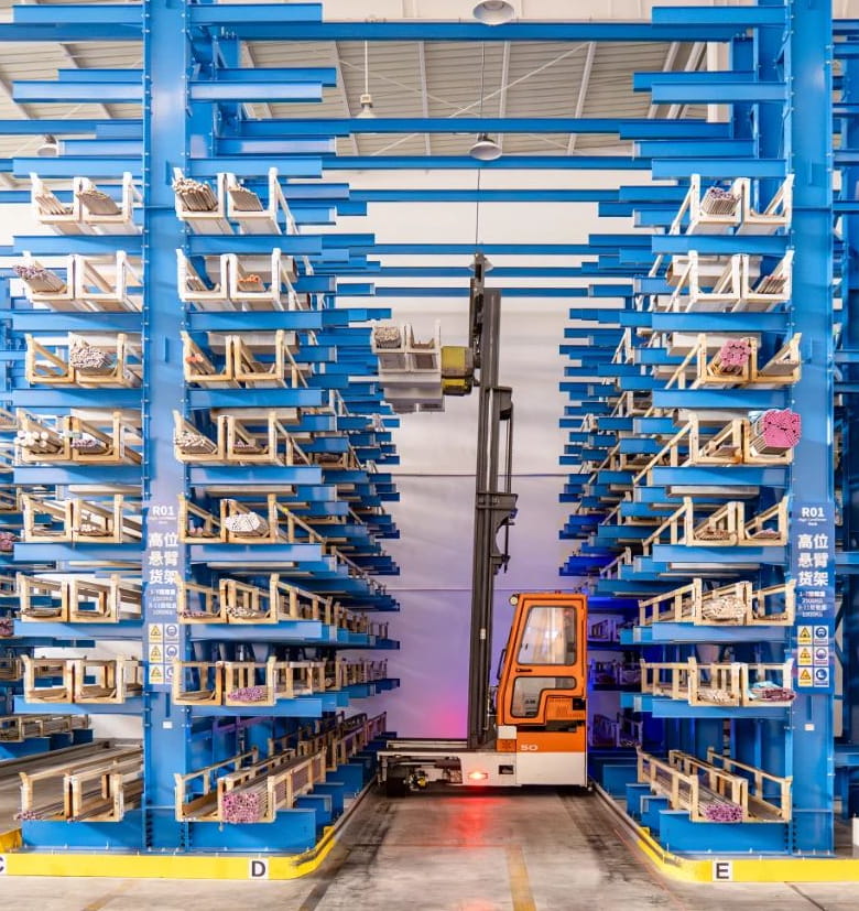 La série WSHM excelle dans le stockage en allées étroites de matériaux longs. réduction significative des exigences en matière de largeur d'allée , permettant ainsi de placer davantage de rayonnages dans un espace d'entrepôt limité et d'améliorer considérablement l'utilisation du stockage.